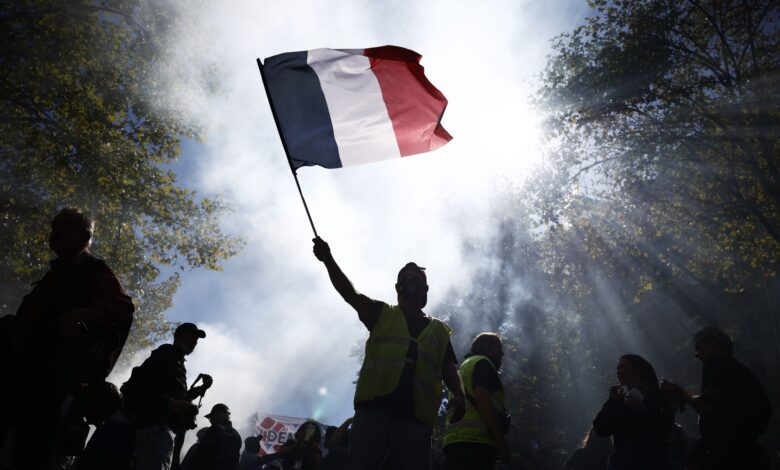 Vezetőkép: A nemzeti zászlót lengeti az egyik tüntető Párizsban 2025. szeptember 18-án, a francia kormány tervezett megszorító intézkedései miatt a szakszervezetek által meghirdetett országos tiltakozónapon. Fotó: MTI/EPA/Yoan Valat