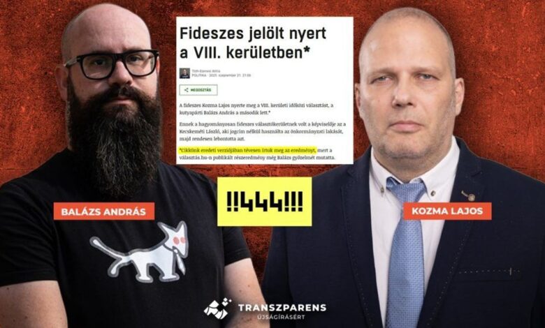„Megdöbbentő álhírt közölt vasárnap este a 444. Az újság beszámolót közölt a szeptember 21-én megtartott időközi önkormányzati választás eredményéről, ám meglepő módon nem a ténylegesen győztes fideszes Kozma Lajos sikeréről adott hírt, hanem a vesztes jelöl, Balázs András győzelmét ünnepelte”- idézi a Transzparens Újságírásért Alapítványért közleményét a Mandiner. Ebben azt írják:
