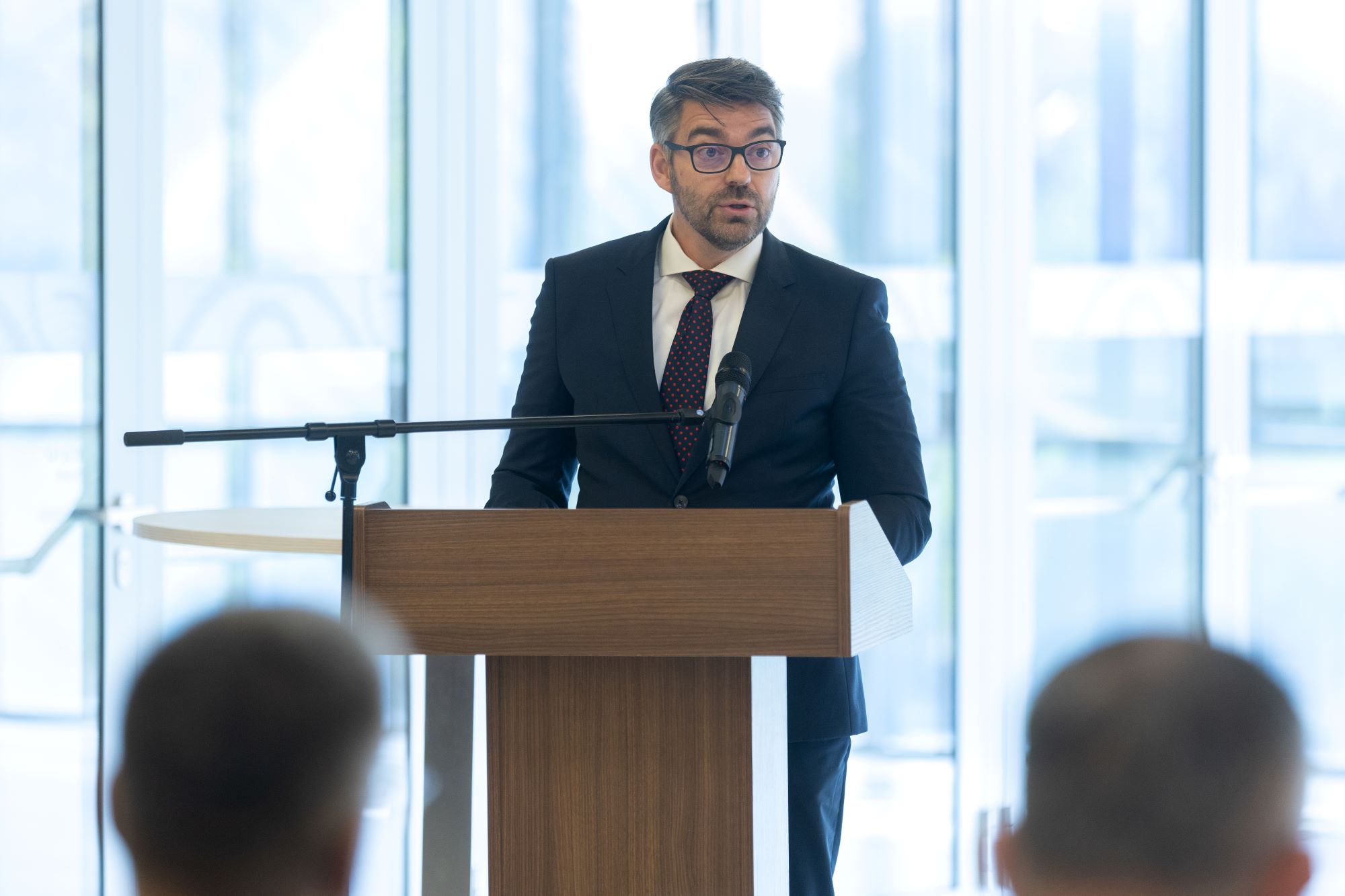 Vezetőkép: Kutnyánszky Zsolt, a Honvédelmi Minisztérium haderőfejlesztésért és védelempolitikáért felelős államtitkára előadást tart a Nemzeti Közszolgálati Egyetem (NKE) innovációs napján az egyetem Ludovika Arénájában 2025. szeptember 23-án. Fotó: MTI/Kocsis Zoltán