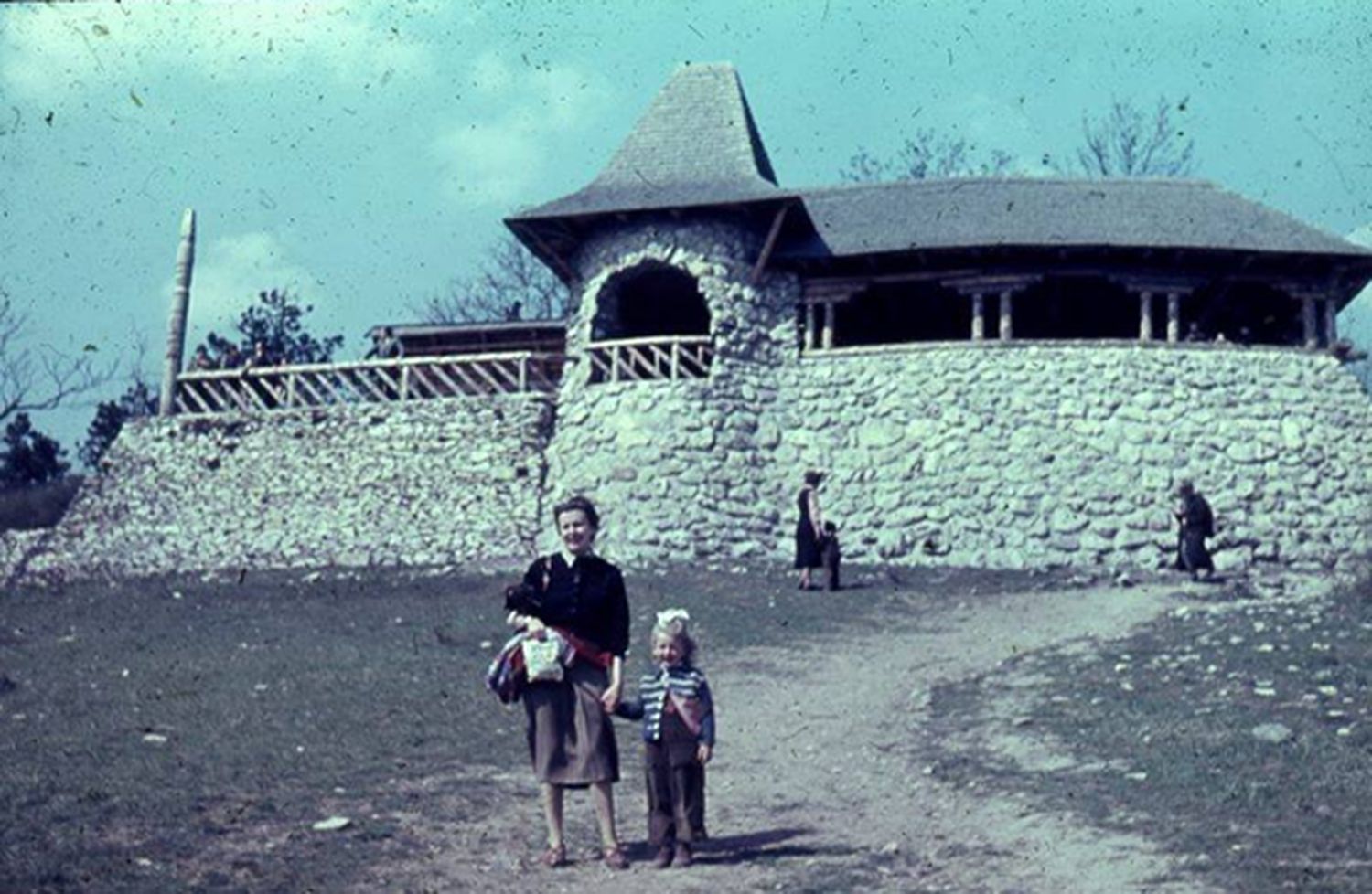 Az 1950-es évek elején a kilátót átalakították: az eredeti zsúpfedést zsindellyel váltották fel, a kettős kúpos torony formáját pedig kontyolt nyeregtetőre cserélték. A fakorlátokat és a székelyes, kopjafára emlékeztető oszlopot azonban még meghagyták. Ebben a formájában került be az egyik legnépszerűbb magyar filmbe, az Állami áruház (1953) egyik jelenetébe, ahol a fakorlát és a jellegzetes oszlop jól felismerhető. Az oszlop csak később, a következő évtizedekben tűnt el az épületről és sajnos azóta sem pótolták.
