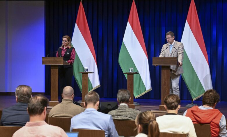 Vezetőkép: Gulyás Gergely, a Miniszterelnökséget vezető miniszter és Vitályos Eszter kormányszóvivő a Kormányinfó sajtótájékoztatón a Karmelita kolostorban 2025. szeptember 17-én. Fotó: MTI/Máthé Zoltán