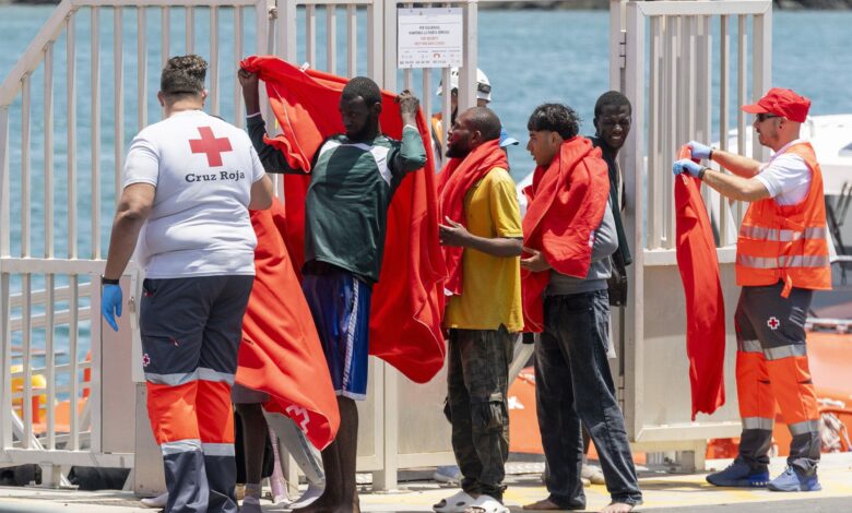 Vezetőkép: Európába igyekvő illegális bevándorlók érkeznek a Kanári-szigetekhez tartozó Lanzarote szigetén fekvő Arrecife kikötőjébe 2025. július 29-én. Fotó: MTI/EPA/EFE/Adriel Perdomo
