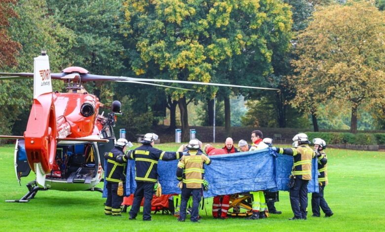 Vezetőkép: Mentőhelikopterhez viszik az Észak-Rajna-Vesztfália tartományban fekvő Herdecke településen elkövetett késelés sebesültjét 2025. október 7-én. A rendőrség tájékoztatása szerint egy ismeretlen tettes megkéselte Iris Stalzert, a város újonnan megválasztott szociáldemokrata polgármesterét. Az 57 éves nőt kritikus állapotban szállították kórházba, az elkövetőt nagy erőkkel keresik. Fotó: MTI/AP/DPA/Alex Talash