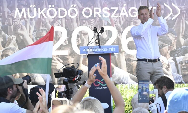 Vezetőkép: Magyar Péter, a Tisza Párt elnöke beszédet mond a párt kötcsei rendezvényén 2025. szeptember 7-én. Fotó: MTI/Szigetváry Zsolt