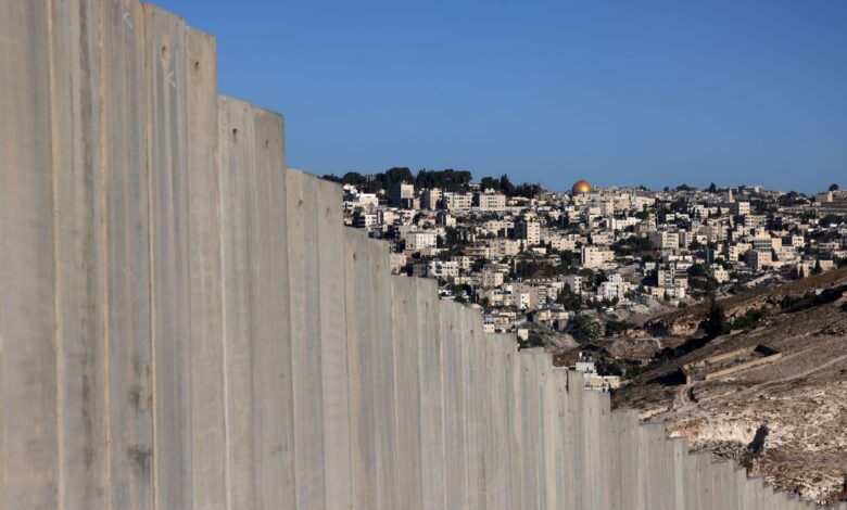 Vezetőkép: Az Izraelt és a palesztin területeket elválasztó biztonsági kerítés egy része a Jeruzsálem külvárosában lévő Abu Disz palesztin faluban 2025. október 7-én. Fotó: MTI/EPA/Alaa Badarneh