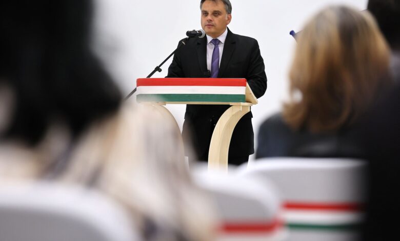 Vezetőkép: Latorcai Csaba, a Közigazgatási és Területfejlesztési Minisztérium parlamenti államtitkára, a Kereszténydemokrata Néppárt (KDNP) ügyvezető alelnöke beszédet mond a medgyesbodzási művelődési ház átadásán 2025. október 15-én. Fotó: MTI/Lehoczky Péter
