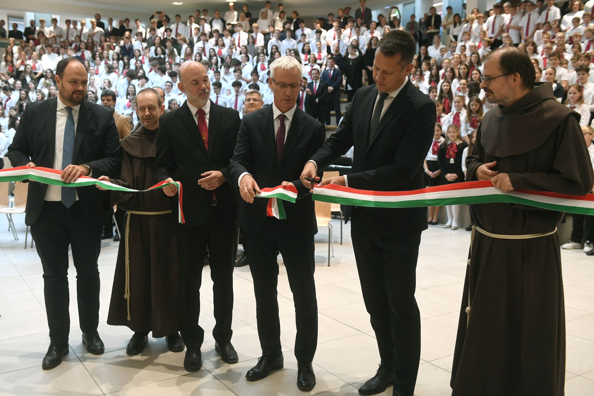 Vezetőkép: Soltész Miklós, a Miniszterelnökség egyházi és nemzetiségi kapcsolatokért felelős államtitkára beszédet mond a Szent Angéla Ferences Általános Iskola és Gimnázium megújult és kibővült épületének átadásán Budapesten 2025. október 15-én. Fotó: MTI/Kovács Attila