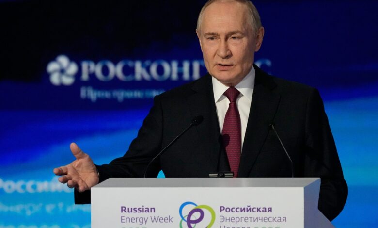 Vezetőkép: Vlagyimir Putyin orosz elnök beszédet mond az Orosz Energiahét című évenkénti nemzetközi fórumon Moszkvában 2025. október 16-án, a háromnapos rendezvény másokik napján. Fotó: MTI/EPA/AP pool/Alekszandr Zemljanyicsenko