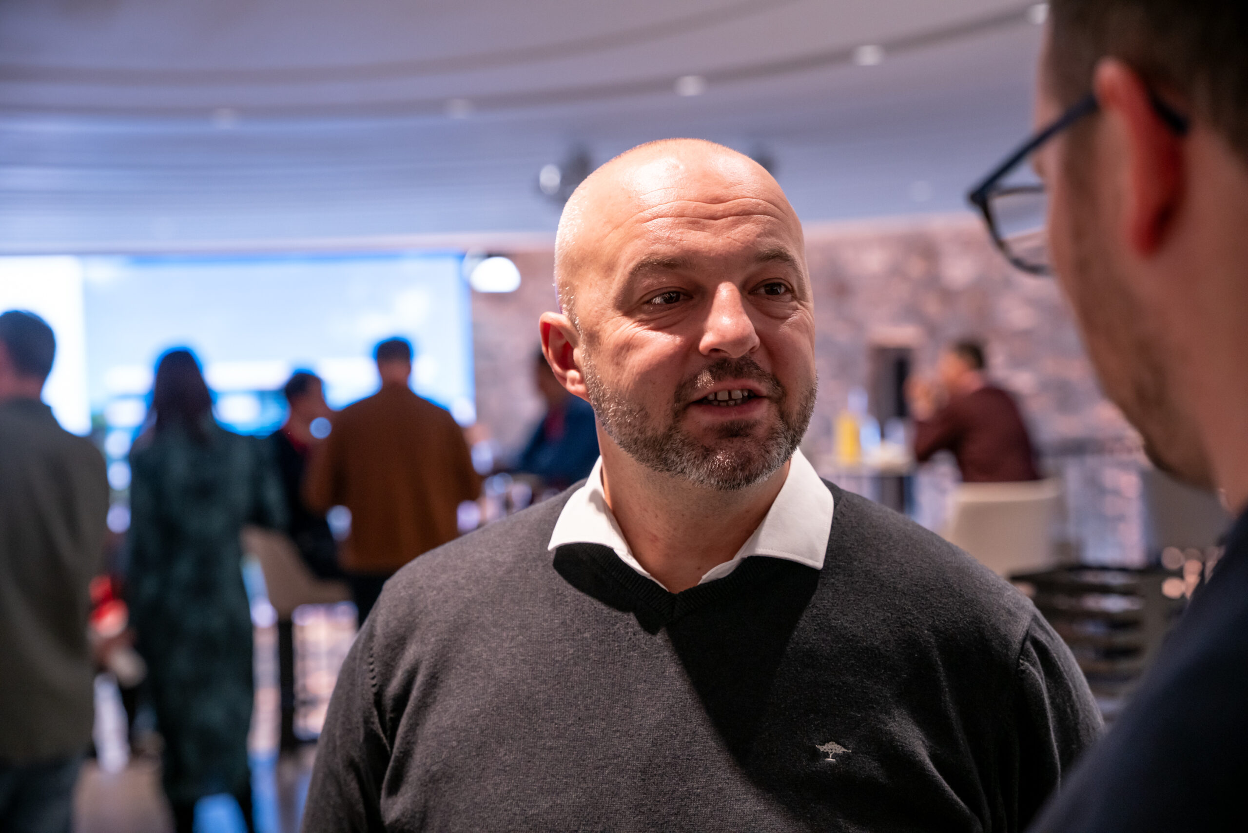 Vezetőkép: Bencze Zoltán, az AlphaVet cégcsoport digitalizációs divíziójának igazgatója, korábbi válogatott kosárlabdázó a Mesterséges Intelligencia: a vezetői gondolkodás új szintje című képzésen 2025. október 21-én Budapesten. Fotó: Vasárnap.hu/Varga Ilona