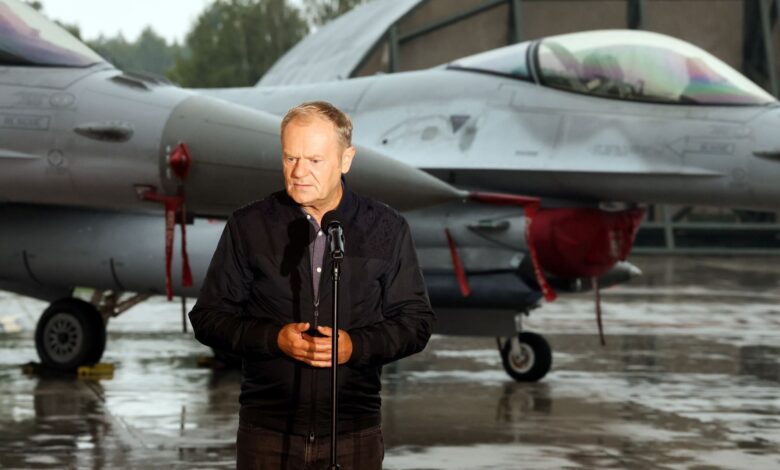 Vezetőkép: Donald Tusk lengyel miniszterelnök sajtóértekezletet tart az előző napi légtérsértésről a lengyel haderő 32-es számú taktikai légitámaszpontján a Lódzi vajdaságban levő Lasknál 2025. szeptember 11-én. Fotó: MTI/EPA/PAP/Marian Zubrzycki