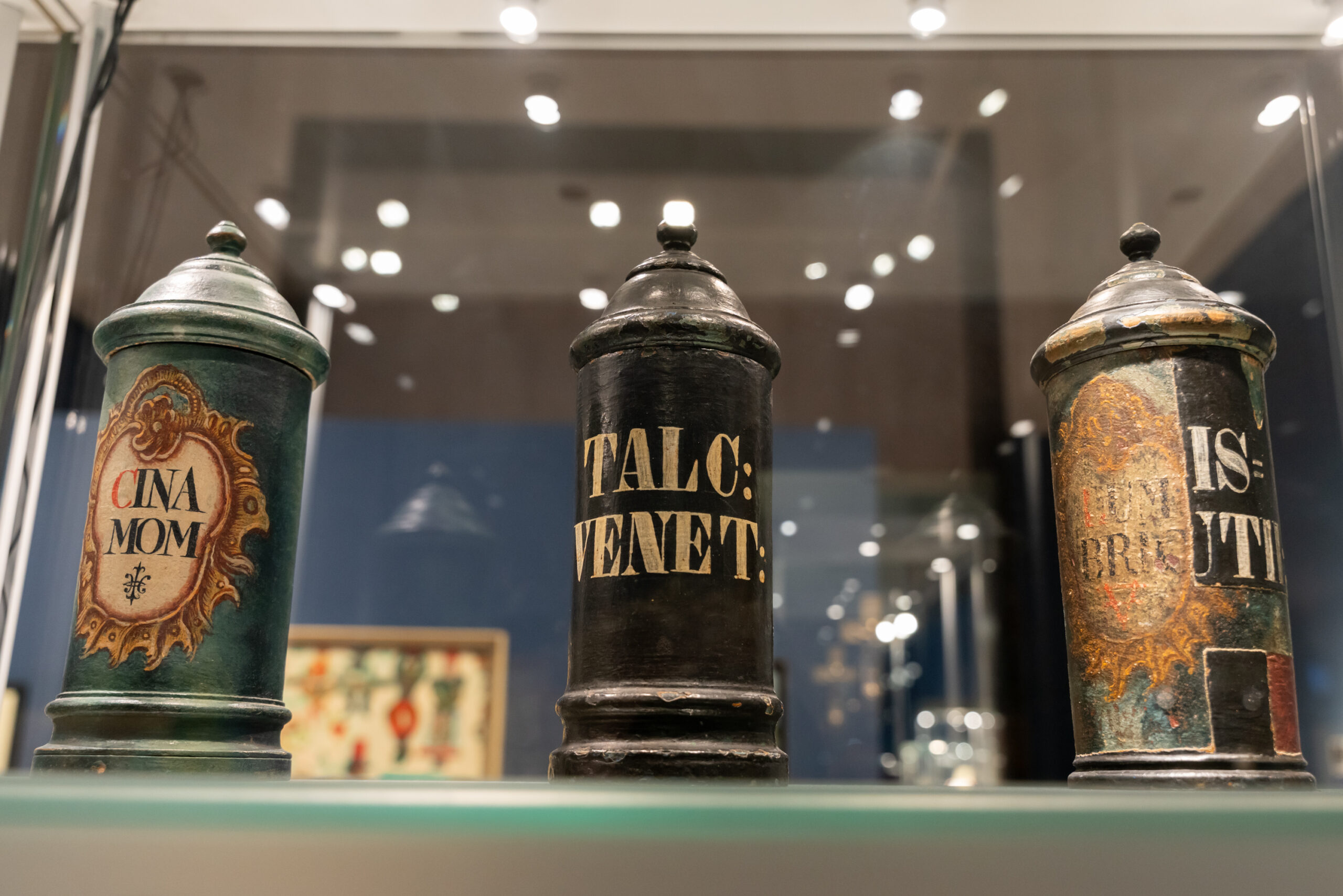 A hasáb alakú üvegedény pálmafás díszítése és felirata halálos szenvedélyt jelző tartalomról árulkodik. A 18. században használatos, cseppet sem veszélytelen potencianövelő szert tartottak benne, szárított kőrisbogár szeszes kivonatát (Tinctura Cantharidum – kőrisbogár-festvény). A férfiak által kedvelt, erős vérbőséggel erekciót okozó szer óvatlan alkalmazása gyakran halált okozott. No, így került be a város Fő utcáján található patikamúzeum egyik érdekes, de talán nem közismert darabja az ünnepi kiállításba.