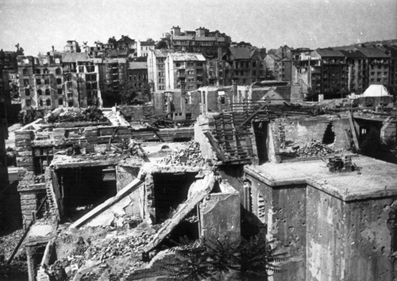 Az első világháborút követő viszonylag csendes, fejlődő időszakát a második világháború tragikus eseményei törtek derékba. Az iskola épületét csak a háború utolsó hónapjaiban, 1945 februárjában érte el a front, amikor a Budai Vár védői és a támadó szovjet csapatok között a főváros egyik leghevesebb tüzérségi párbaja bontakozott ki. A környező magaslatokon és a Vérmező peremén álló szovjet ütegek, valamint a várat védő német–magyar alakulatok heves tűzharcot vívtak az iskola felett. A megállás nélküli ágyú- és aknavető tűz következtében az épület súlyos károkat szenvedett: a mozgalmas tetőzet és a teljes harmadik emelet menthetetlenül megsérült.