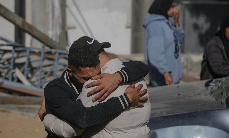 Vezetőkép: Hozzátartozójukat siratják palesztin férfiak a gázai as-Sifa kórháznál 2025. október 29-én, miután az éjjel Izrael légicsapásokat hajtott végre az övezetben. Fotó: MTI/EPA/Mohamed Szaber