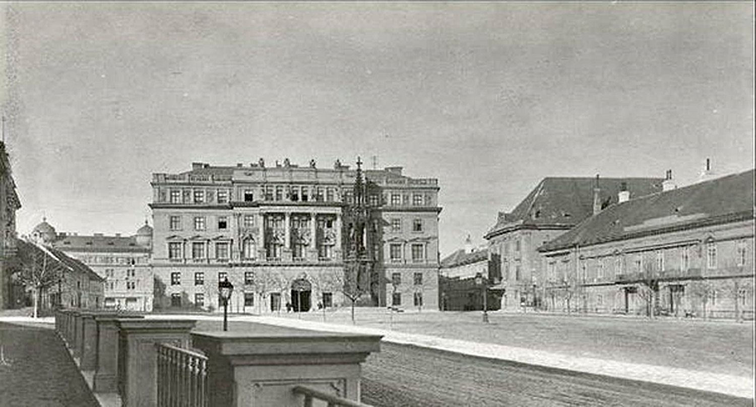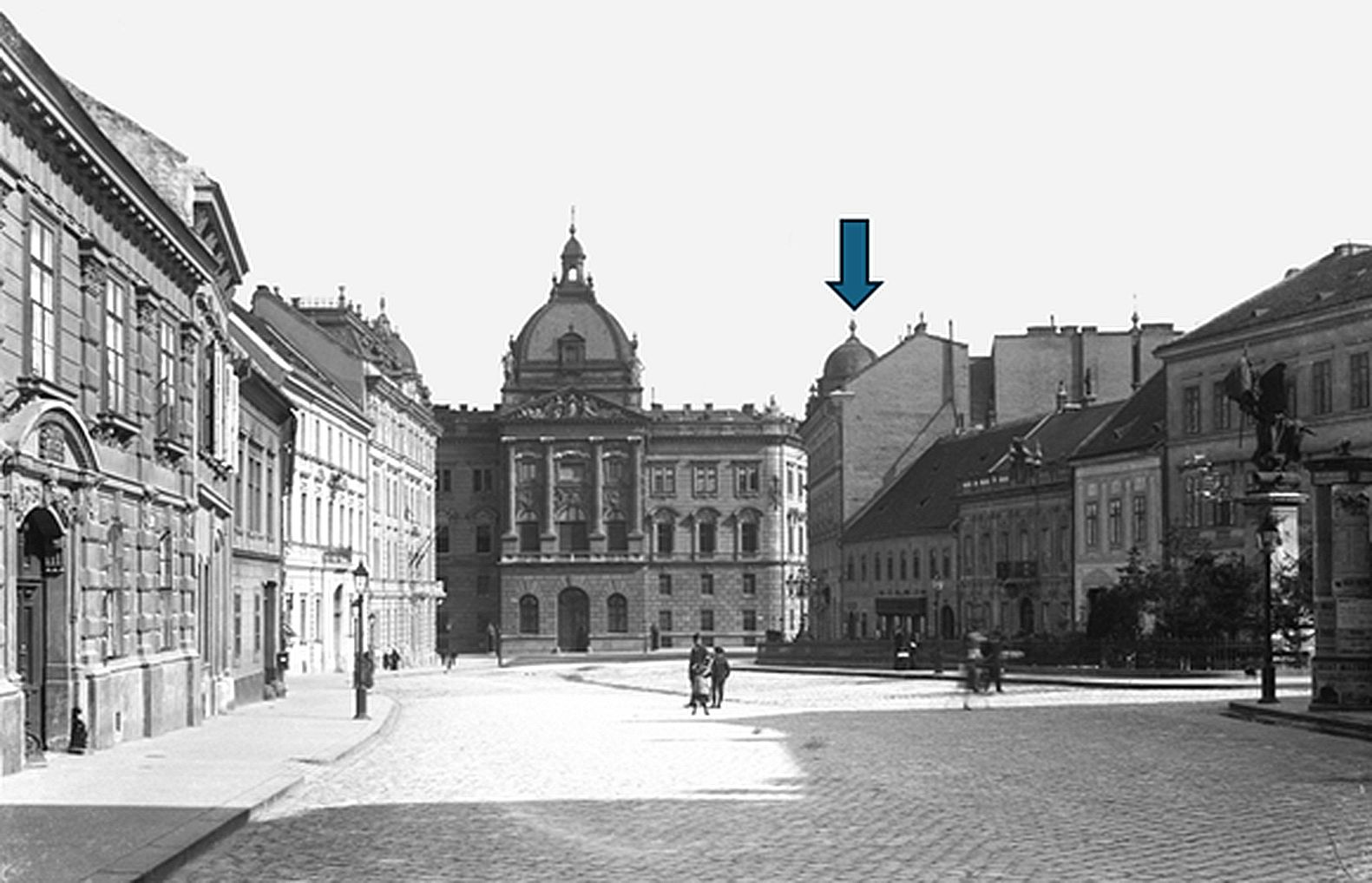 Egyik ilyen historizáló épület a Dísz tér és a Tóth Árpád sétány sarkán az 1893-ban épült Kovács-bérház volt. Az épületet Illés Gyula tervei szerint, szellőczei Kovács VII. Pál özvegyének és három gyermekének megrendelésére emelték. Az új bérház helyén korábban barokk lakóépület állt, amelyben a 18. század elején Buda első patikája, az Arany Egyszarvúhoz címzett gyógyszertár működött, később pedig az Arany Sas Patika.