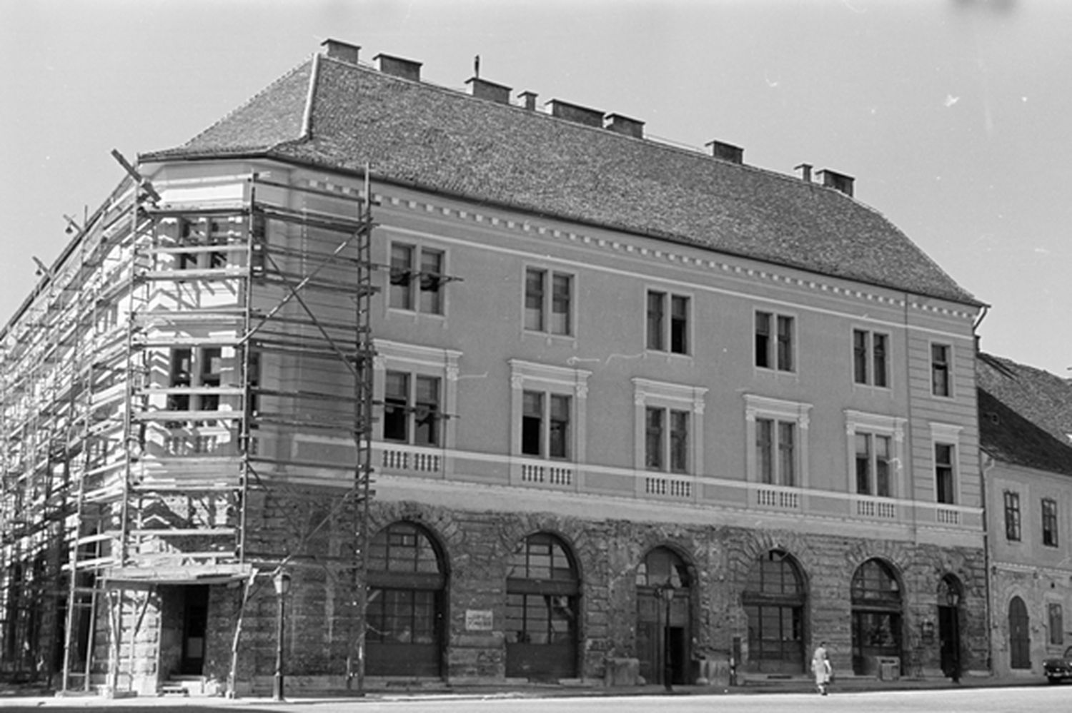 1959-ben aztán újabb homlokzati „felújítás” következett, melynek során eltűntek az historizáló díszek: a koszorúdíszek, füzérek, címeres motívumok és párkányok és a földszint mészkő lábazata is. A külső átalakítást a belső terek átrendezése is követte: 1966-ban a földszinti helyiségeket egybenyitották és megnyílt a Korona Cukrászda, amely a hetvenes évektől Mikes Lilla vezetésével a Korona Pódium színhelye lett – irodalmi estekkel, zenés műsorokkal, később kisebb színházi produkciókkal.