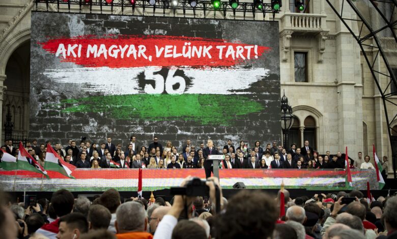Vezetőkép: Orbán Viktor miniszterelnök beszédet mond az 1956-os forradalom és szabadságharc 69. évfordulóján rendezett ünnepi megemlékezésen az Országház előtti Kossuth Lajos téren 2025. október 23-án. Fotó: MTI/Miniszterelnöki Kommunikációs Főosztály/Fischer Zoltán