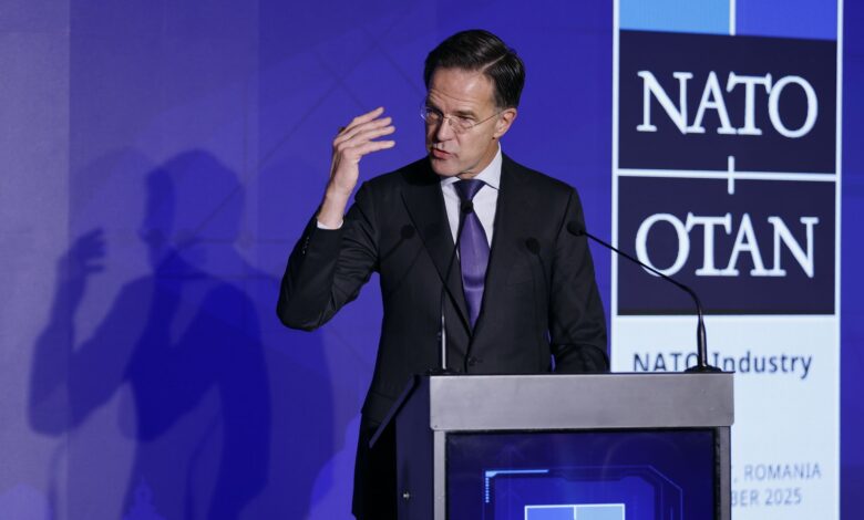 Vezetőkép: Mark Rutte NATO-főtitkár beszél a NATO ipari fórumának megnyitóján Bukarestben 2025. november 6-án. Az eseményt a NATO Szövetséges Transzformációs Parancsnokság (SACT) és a román védelmi minisztérium szervezi. Fotó: MTI/EPA/Robert Ghement