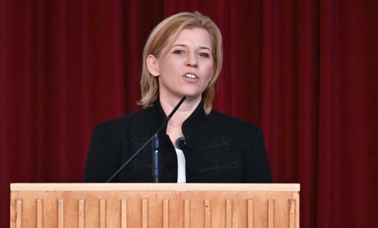 Vezetőkép: Varga-Bajusz Veronika, a Kulturális és Innovációs Minisztérium felsőoktatásért, szak- és felnőttképzésért, fiatalokért felelős államtitkára Budapesten, 2025. október 22-én. Fotó: MTI/Illyés Tibor