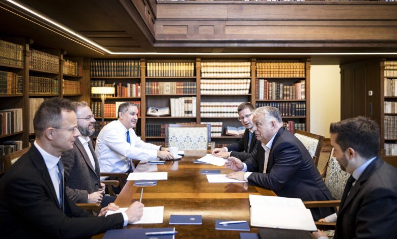 Vezetőkép: Orbán Viktor miniszterelnök, Szijjártó Péter külgazdasági és külügyminiszter, Orbán Balázs, a miniszterelnök politikai igazgatója, Nagy Márton nemzetgazdasági miniszter, Gulyás Gergely, a Miniszterelnökséget vezető miniszter és Máté János, a Miniszterelnöki Programirodát vezető államtitkár megbeszélést folytat a Karmelita kolostorban 2025. november 18-án. Fotó: MTI/Miniszterelnöki Kommunikációs Főosztály/Kaiser Ákos