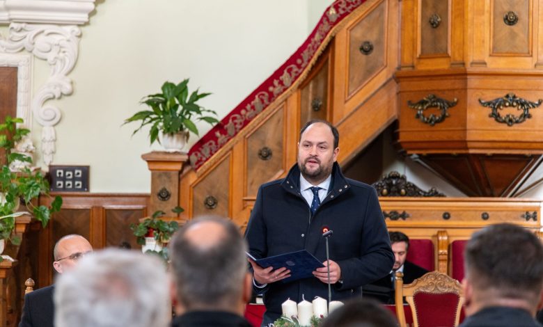Vezetőkép: A Nemzetpolitikai Államtitkárság által közreadott képen Nacsa Lőrinc, a Miniszterelnökség nemzetpolitikáért felelős államtitkára beszédet mond a Szatmári Református Egyházmegye új hivatali épületének átadása előtt tartott hálaadó istentiszteleten a Láncos-templomban 2025. december 5-én. Fotó: MTI/Nemzetpolitikai Államtitkárság/Szakács Tamás