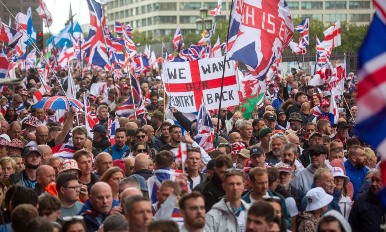 Vezetőkép: A „Unite the Kingdom” (Egyesítsük a királyságot) címmel meghirdetett bevándorlásellenes tüntetés résztvevői Londonban 2025. szeptember 13-án. Fotó: MTI/EPA/Tayfun Salci