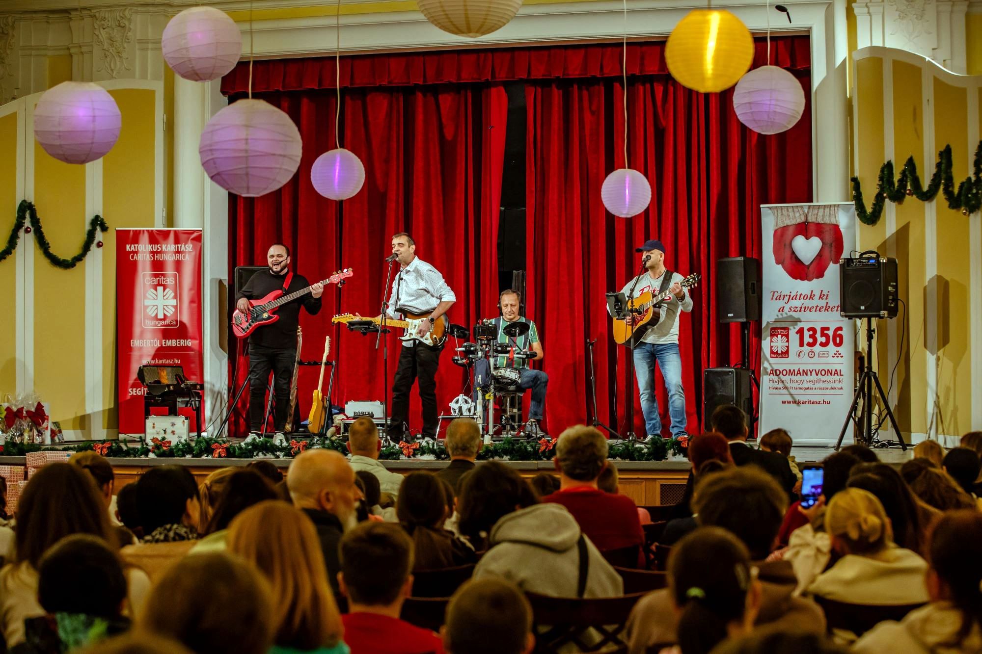 Szeretettel köszöntötte közel 350 résztvevőt Farkas Gábor, aki már a nyitó szavaival közössé formálta a termet: ez a délután most a találkozásról, az örömről és a figyelmességről szól a „Tárjátok ki a szíveteket!” adventi segélyakció részeként. A Karitász budapesti Integrációs Központjához tartozó menekült családok, baranyai felzárkózó településekről érkező fiatalok és a vidéki egyházmegyei Karitászok (Kalocsa-Kecskemét, Székesfehérvár, Vác) által támogatott gyerekek ünnepeltek együtt. A programok alatt a kis vendégeket kreatív sarok is várta színezővel, origamival és csillámtetoválással, ahol a Heavy Tools munkatársai segítettek, akik az angyalbatyu ajándékcsomagok összeállításában is részt vállaltak önkéntesként.