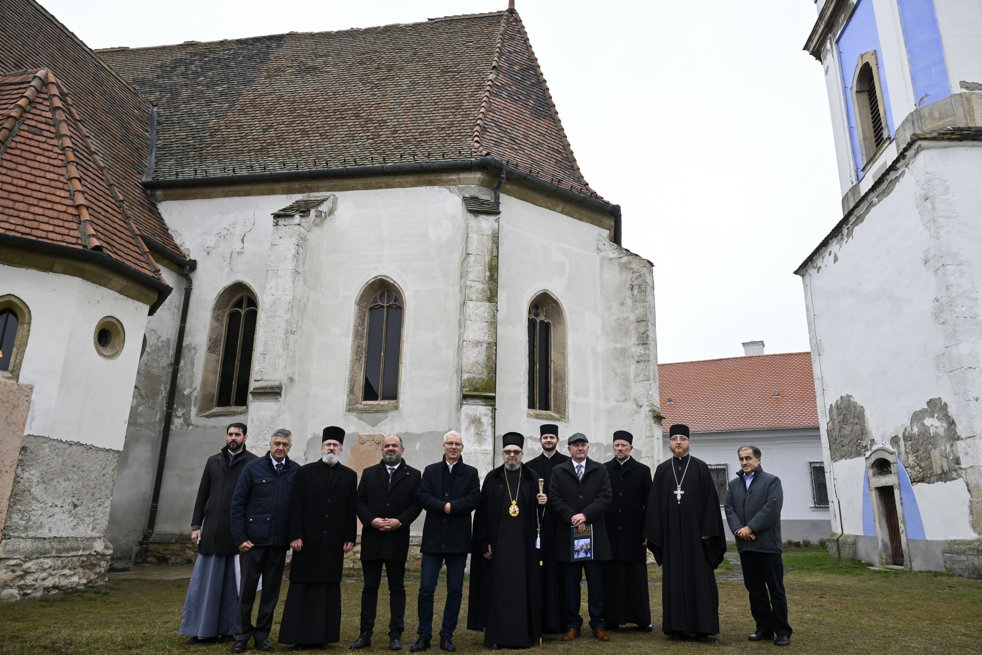Vezetőkép: Soltész Miklós, a Miniszterelnökség egyházi és nemzetiségi kapcsolatokért felelős államtitkára és Pantelic Lukijan, a Budai Szerb Ortodox Egyházmegye püspöke kezet fog a ráckevei szerb ortodox templom mellett 2025. december 22-én. Fotó: MTI/Hegedüs Róbert