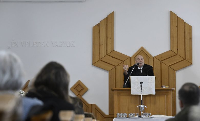 Vezetőkép: Steinbach József, a Magyarországi Református Egyház zsinatának lelkészi elnöke igét hirdet a karácsonyi istentiszteleten a balatonalmádi református templomban 2025. december 25-én. Fotó: MTI/Bruzák Noémi