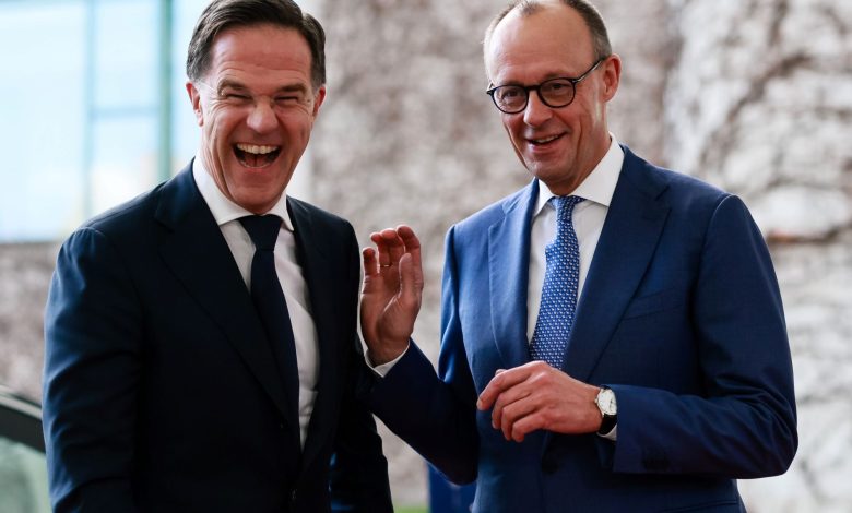 Vezetőkép: Friedrich Merz német kancellár (j) Mark Rutte NATO-főtitkárt fogadja a berlini kancellári hivatalnál 2025. december 11-én. Fotó: MTI/EPA/Clemens Bilan