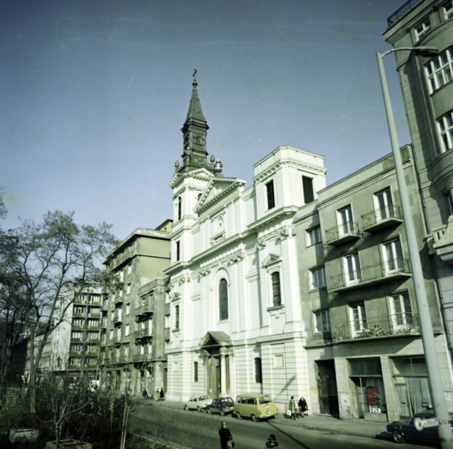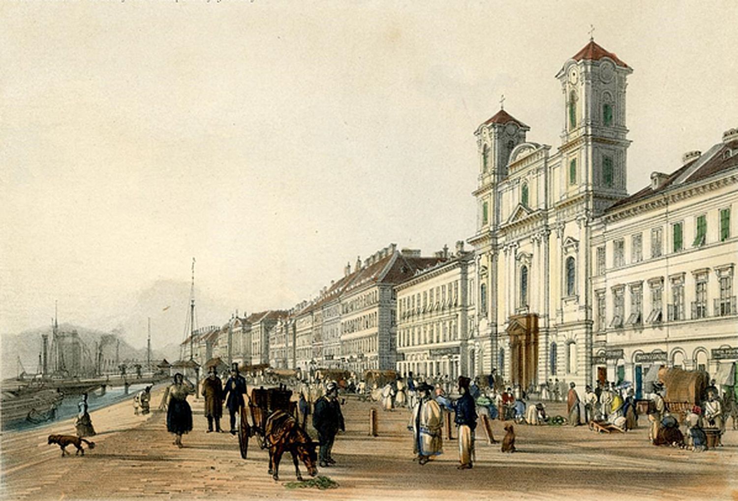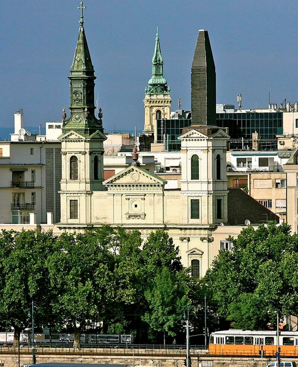 Az új templom megtervezésével a kor templomépítészetében jelentős tapasztalattal rendelkező Jung Józsefet bízták meg. A megrendelők nem elégedtek meg egy egyszerű egyházi épülettel, céljuk egy olyan templom volt, amely rangjával és megjelenésével méltó módon jelenik meg Pest városképében. A terveket ezért többször átdolgozták, míg végül megszületett az a forma, amelyet 1801-ben felszenteltek és illeszkedett a Duna-part reformkori klasszicista stílusához. A belső tér gazdagsága már ekkor előrevetítette a templom különleges szerepét, az ikonosztázion és az ikonok elkészítése a kor kiemelkedő mestereinek munkája volt. A 19. század elejére az épület kívül-belül elkészült, ám a tornyok lezárása elmaradt. A két torony ugyan felépült, de csak ideiglenes fedést kaptak, mintha az épület maga is várta volna végső formáját.