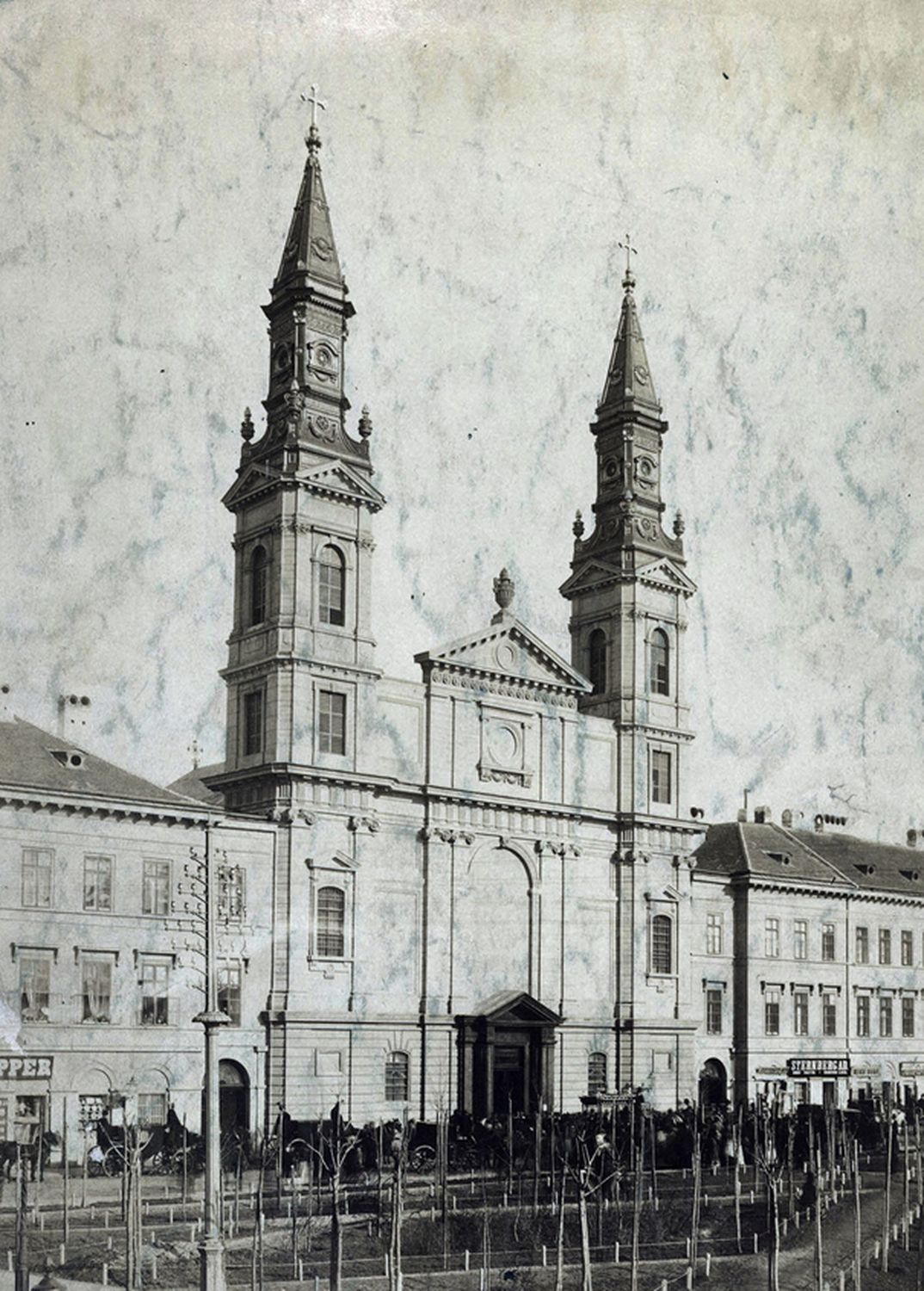 Vezetőkép: Az Ybl Miklós által átalakított külső és a látványos barokk-copf stílusú tornyok, 1900. Forrás: Fortepan/Budapest Főváros Levéltára/Klösz György fényképei