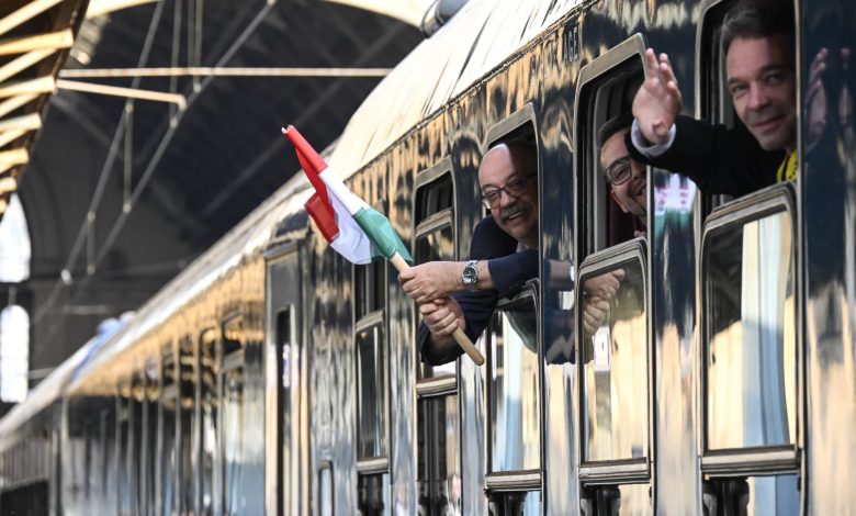 Vezetőkép: Budai László szervező, a Misszió Tours utazási iroda ügyvezető igazgatója (b) a csíksomlyói pünkösdi búcsúba tartó 12. Boldogasszony zarándokvonat indulásakor a Keleti pályaudvaron 2025. június 5-én. Fotó: MTI/Szigetváry Zsolt