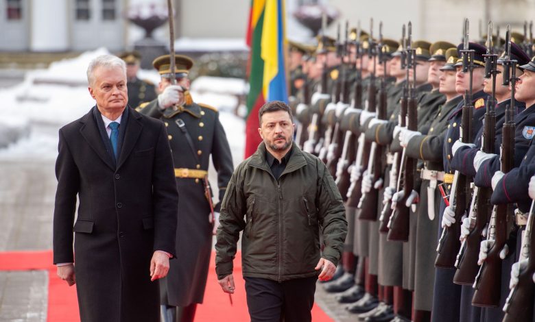 Vezetőkép: A litván elnöki hivatal képén a hivatalos látogatáson Litvániában tartózkodó Volodimir Zelenszkij ukrán elnök és litván partnere, Gitanas Nauseda a vilniusi fogadási ünnepségen 2026. január 25-én. Fotó: MTI/EPA/Litván elnöki hivatal/Robertas Dackus