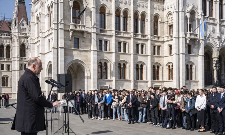 Vezetőkép: Csáky Csongor, a Rákóczi Szövetség elnöke beszédet mond a szövetség II. Rákóczi Ferenc születésének 349. évfordulóján tartott megemlékezésén, az erdélyi fejedelem Kossuth téri szobránál 2025. március 27-én. Fotó: MTI/Szigetváry Zsolt