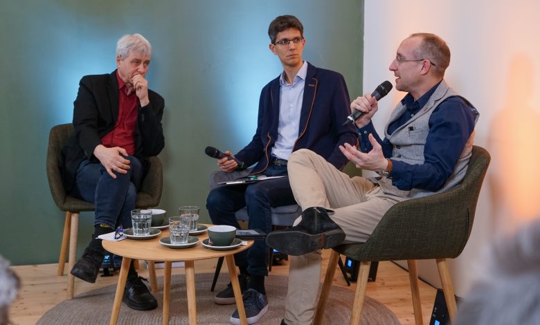 Vezetőkép: Dobszay János, a HVG vezető szerkesztője, Vágvölgyi Gergely, a MAKÚSZ sajtófórumának moderátora és Szilvay Gergely, a Mandiner főmunkatársa. Fotó: Vasárnap.hu/Varga Ilona