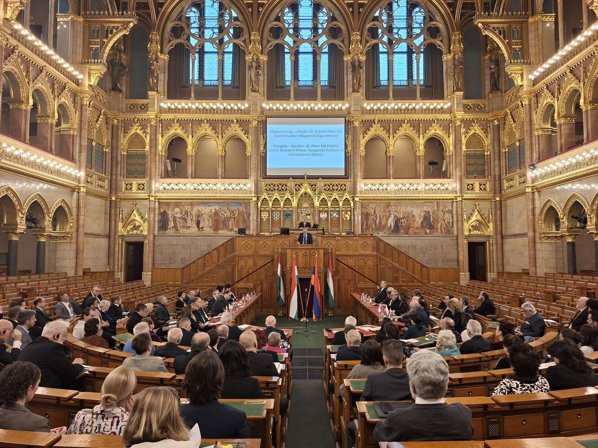 Konferencia az örmény keresztény diaszpórák helyzetéről az Országházban 2026.02.2-án. Forrás: Facebook/Akopjan Nikogosz – Országgyűlés, Örmény Nemzetiségi Szószóló