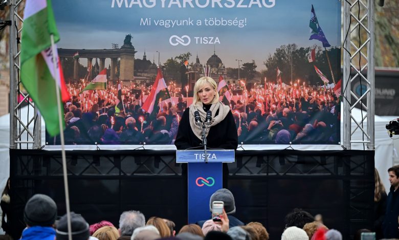 Vezetőkép: Borbély Alexandra színésznő beszédet mond a Tisza Párt országjárásának szegedi állomásán 2025. december 20-án. Fotó: MTI/Czeglédi Zsolt