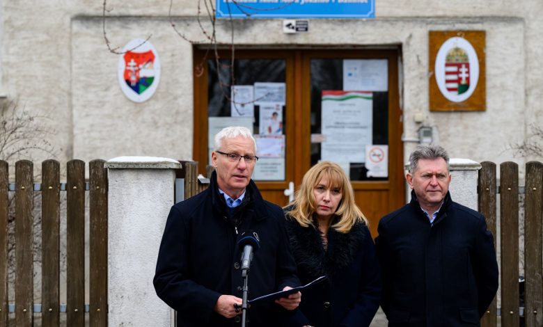 Vezetőkép: Soltész Miklós, a Miniszterelnökség egyházi és nemzetiségi kapcsolatokért felelős államtitkára, Makszimné Pálfi Enikő igazgató és Bencsik János, a térség fideszes országgyűlési képviselője (b-j) a Bánhidai Jókai Mór Általános Iskola új fejlesztéseiről tartott sajtótájékoztatón Tatabányán 2026. február 17-én. Fotó: MTI/Vasvári Tamás