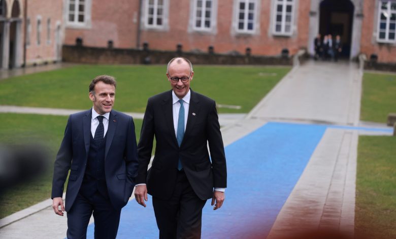 Vezetőkép: Emmanuel Macron francia elnök és Friedrich Merz német kancellár az EU-tagországok vezetőinek informális találkozójára érkezik az Alden Biesen-kastélyba a belgiumi Bilzenben 2026. február 12-én. Fotó: MTI/EPA/Olivier Hoslet