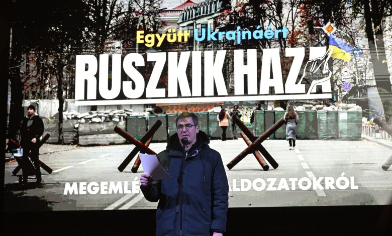 Vezetőkép: Karácsony Gergely főpolgármester beszédet mond az Ukrajna melletti szolidaritási tüntetésen Oroszország budapesti nagykövetsége előtt 2026. február 22-én. Fotó: MTI/Bruzák Noémi