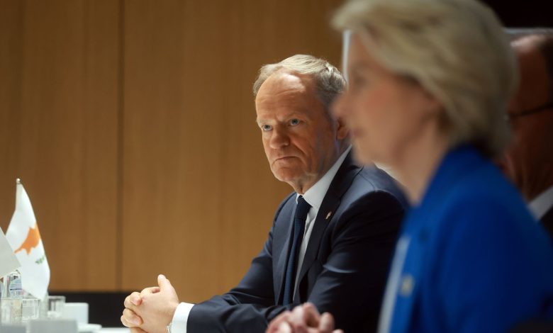 Vezetőkép: Donald Tusk lengyel miniszterelnök az uniós tagállamok csúcstalálkozóját megelőző munkareggelin Brüsszelben 2025. december 18-án. Fotó: MTI/EPA pool/Olivier Hoslet