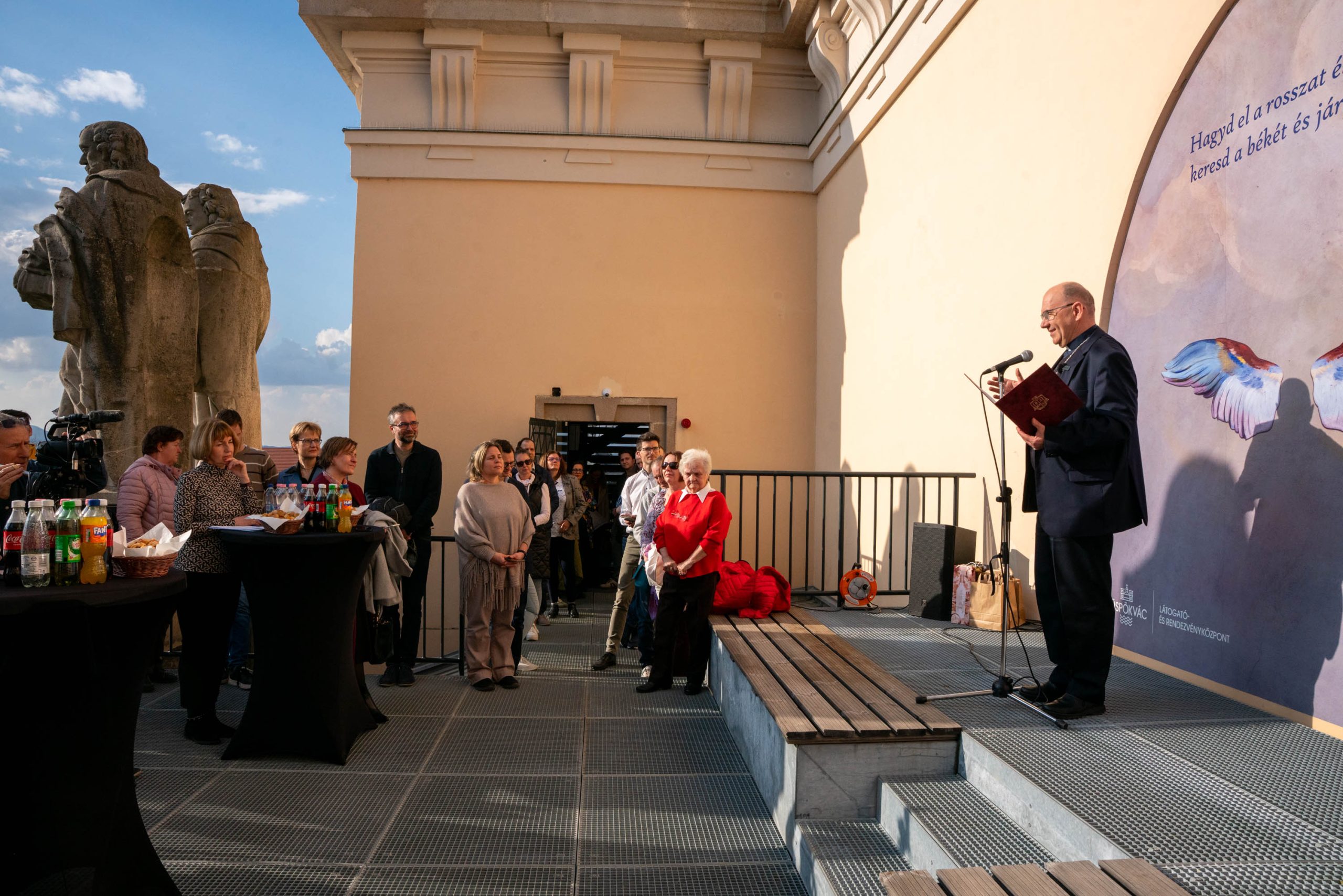 Végül „ennek a kilátó toronykomplexumnak a teljességét magába foglaló álom valósult meg, amelynek most a megnyitóján vagyunk, az alattunk lévő teremben egy kiállítóteret nyitunk meg ünnepélyesen”– mondta a püspök.