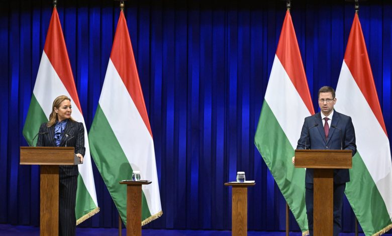 Vezetőkép: Gulyás Gergely, a Miniszterelnökséget vezető miniszter és Vitályos Eszter kormányszóvivő a Kormányinfó sajtótájékoztatón a Karmelita kolostorban 2026. március 19-én. Fotó: MTI/Máthé Zoltán