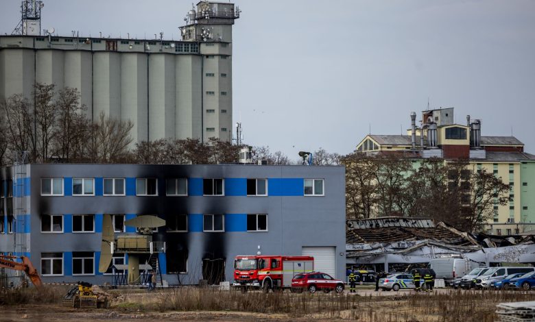 Vezetőkép: Az LPP Holding cseh hadiipari vállalat kiégett rakatárépülete előtt tűzoltók és rendőrök a csehországi Pardubicében egy éjszakai tűz után, 2026. március 20-án. A The Earthquake Faction (Földrengés Frakció) nevű Izrael-ellenes szervezet közleményben tudatta, hogy ő gyújtotta fel a létesítményt. Személyi sérülés nem történt. A cseh cég közös dróngyártást tervez egy izraeli vállalattal. Fotó: MTI/EPA/Martin Divisek