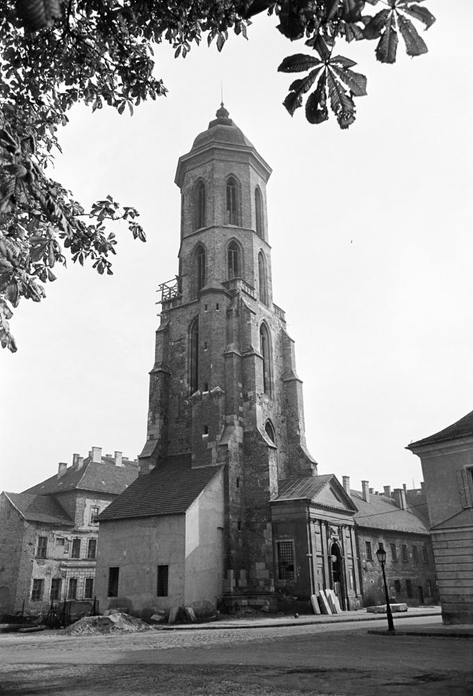 A torony megmenekült, részben Csemegi József közbenjárásának köszönhetően. 1950 és 1952 között helyreállították, leverték róla a vakolatot, kibontották a gótikus ablakokat, a sisakot a háború előtti formában állították vissza. A toronybelső és az oldalkápolnák rendezése az 1960-as évek elején történt meg. Az 1980-as években kialakították a romkertet, ahol a gótikus falak vonalát a járószint fölé emelték, és egy rekonstruált csúcsíves ablak érzékelteti az egykori szentély monumentalitását.