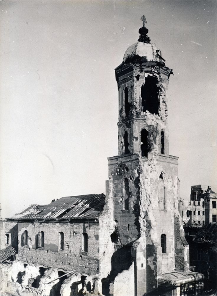A 20. század elején a templom a tábori püspökség fennhatósága alá került, védőszentje Kapisztrán Szent János lett. A második világháború szörnyű ostroma során az épület súlyosan megsérült. A tetőzet több helyen beomlott, a szentély és és az oldalhajó nagyrészt elpusztultak, a torony felső szintjein repedések keletkeztek, egyik sarka leomlott. A főhajó ugyanakkor megmaradt és a sérülései ellenére helyreállítható lett volna.