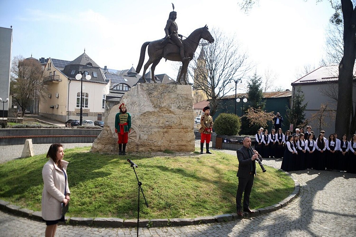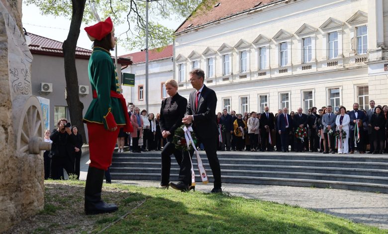 Vezetőkép: Varga-Bajusz Veronika, a Kulturális és Innovációs minisztérium felsőoktatásért, szak- és felnőttképzésért, fiatalokért felelős államtitkára és Hankó Balázs kultúráért és innovációért felelős miniszter a beregszászi Rákóczi ünnepségen 2026.03.26-án. Forrás: II. Rákóczi Ferenc Kárpátaljai Magyar Egyetem