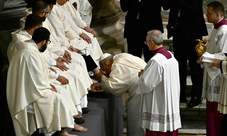 Azt írják, a Szentatya a homília után tizenkét római egyházmegyés pap lábát mosta meg, akik közül tizenegyet ő maga szentelt fel 2025. május 31-én Sarlós Boldogasszony ünnepén a Szent Péter-bazilikában.