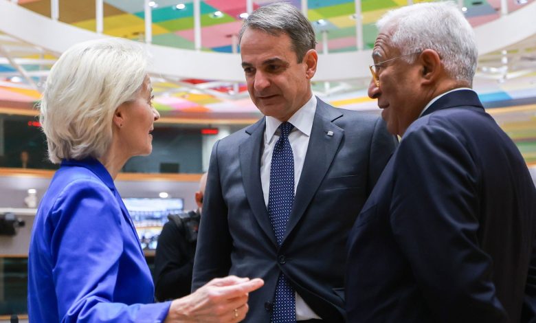 Vezetőkép: Ursula von der Leyen, az Európai Bizottság elnöke, Kiriákosz Micotákisz görög miniszterelnök és António Costa, az Európai Tanács elnöke az EU-tagországok állam-, illetve kormányfőinek csúcstalálkozóján Brüsszelben 2026. március 19-én. Fotó: MTI/EPA/Olivier Hoslet