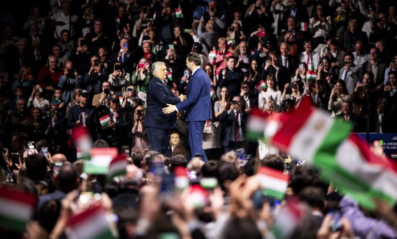 Vezetőkép: Orbán Viktor miniszterelnök és J.D. Vance amerikai alelnök a magyar-amerikai barátság napja alkalmából rendezett nagygyűlésen az MTK Sportparkban 2026. április 7-én. Fotó: MTI/Miniszterelnöki Kommunikációs Főosztály/Fischer Zoltán